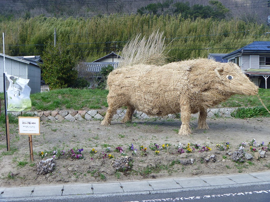 瀬戸内国際芸術祭2013・春で復活?した稲わらアートのオリーブ号