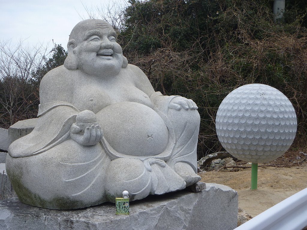 この地区は福田地区といって、石材会社がたくさんあるんですよ。 これはオブジェだと思います。 近くにゴルフ場もあるので、でっかいゴルフボールは宣伝でしょうね(笑) 醤油プリン大丈夫でしたか? じゃ私も食べてみよう(爆)