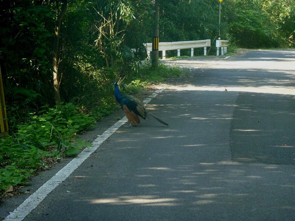 昔、小豆島に「孔雀園」という観光施設があったんですが、そこから脱走した孔雀の生き残りだと思います。