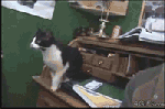 うちで以前飼ってたニャンコは、2日に1回ぐらい本棚のてっぺんから落ちてましたよ(笑)